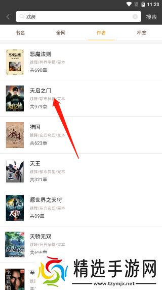 2、这时候就来到了搜索的功能,用户可以搜索需要阅读小说的书名或者作者,同样也可以通过小说标签来浏览;