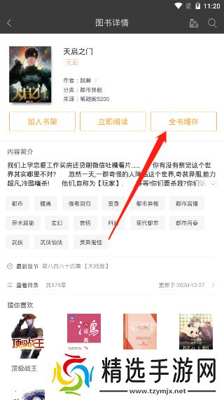 4、来到了小说的图书详情页,我们在书名的下方就能够看见“全书缓存”的功能并点击;