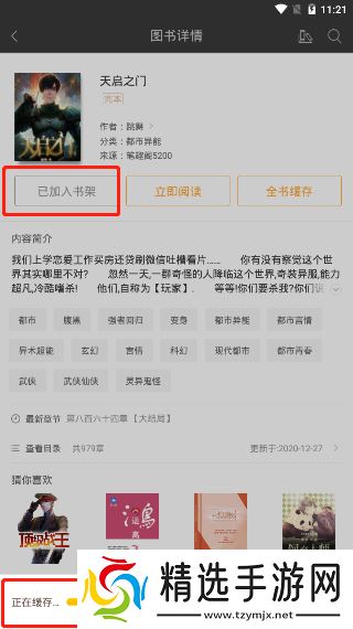 5、系统这时候就会开始缓存小说,同时该本小说也是加入到了我们的书架中;