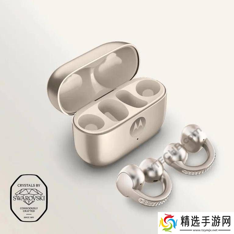 首先映入眼帘的是摩托罗拉Loop Buds耳机的设计。这款耳机采用了别出心裁的耳夹式造型,整体看起来就像一款时尚的耳环。对于不喜欢入耳式耳机的用户来说,这种开放式设计无疑是一个理想的选择。从渲染图中可以看到,Loop Buds至少提供了米色和绿色两种配色方案。米色版本特别镶嵌了施华洛世奇水晶,增添了奢华与时尚的气息;而绿色版本则更加简约,注重实用与舒适。