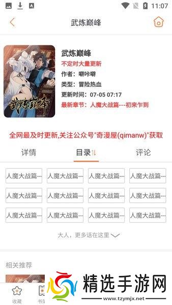 奇漫屋 全本漫画免费读测评奇漫屋 全本漫画免费读是一款漫画阅读软件,从互联网上收集漫画资源,为每个人提供丰富多样的漫画阅读资源。在这里,您可以找到各种高质量的中国、日本、韩国和其他漫画作品,所有这些都是原创和未删减的漫画,让您体验到原创和令人兴奋的漫画故事。该平台已删除所有广告和弹出窗口,为您带来更舒适的漫画阅读体验。您还可以将您最喜欢的作品下载到本地手机,使您摆脱网络限制,随时随地享受漫画世界。