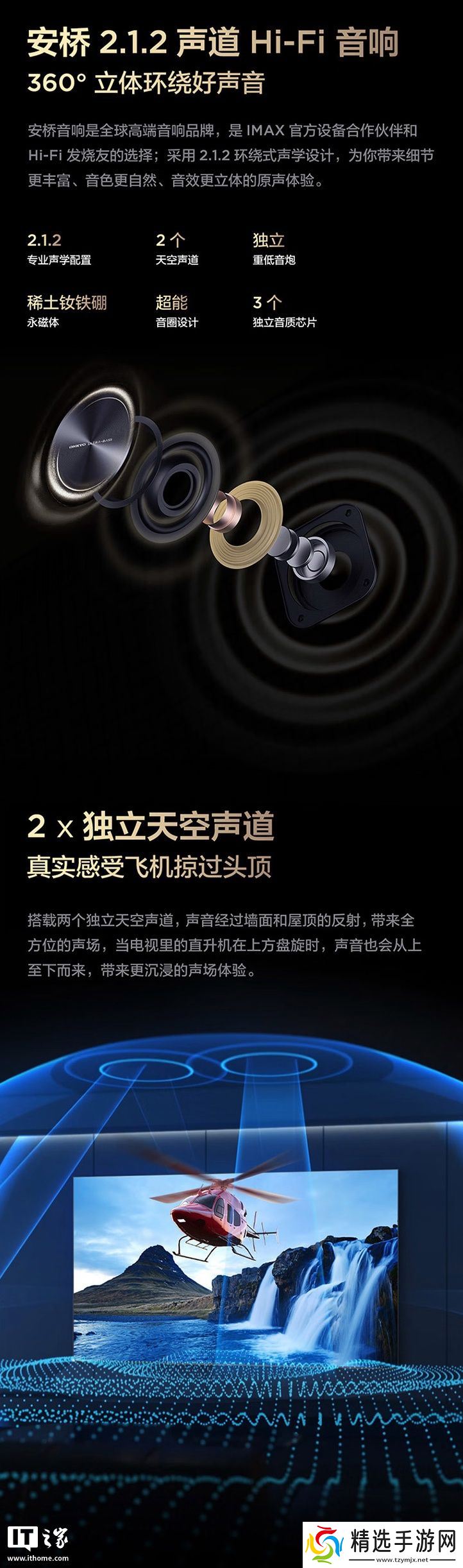 系列电视配备安桥2.1.2声道Hi-Fi音响,配备2个独立天空声道,内置“灵控系统3.0”,支持AI助理,电视配备TSR AI画质芯片。