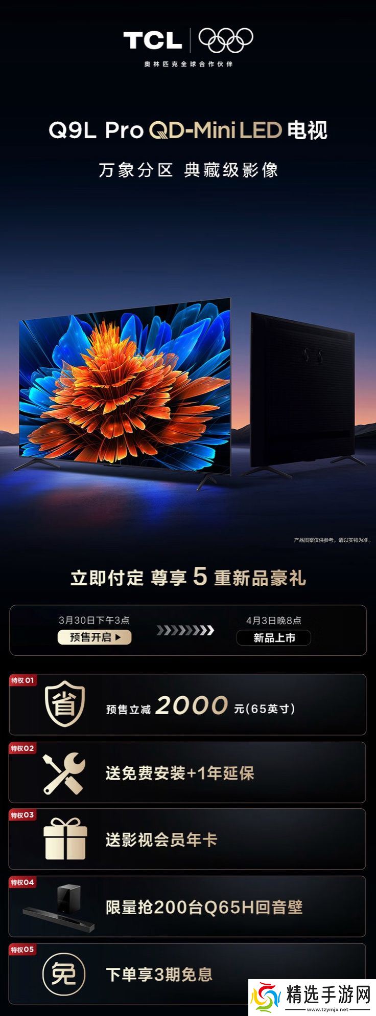 京东 TCL Q9L Pro 系列电视 4299 元直达链接