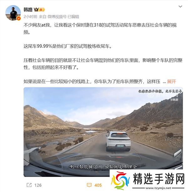 许多网友还@了参与此次活动的媒体人士,但韩路认为这并无必要。他表示,媒体人士通常位于车队中间,对尾车的恶意压车行为并不知情。如果媒体人士知道这种行为,他们肯定会反对保时捷的做法。