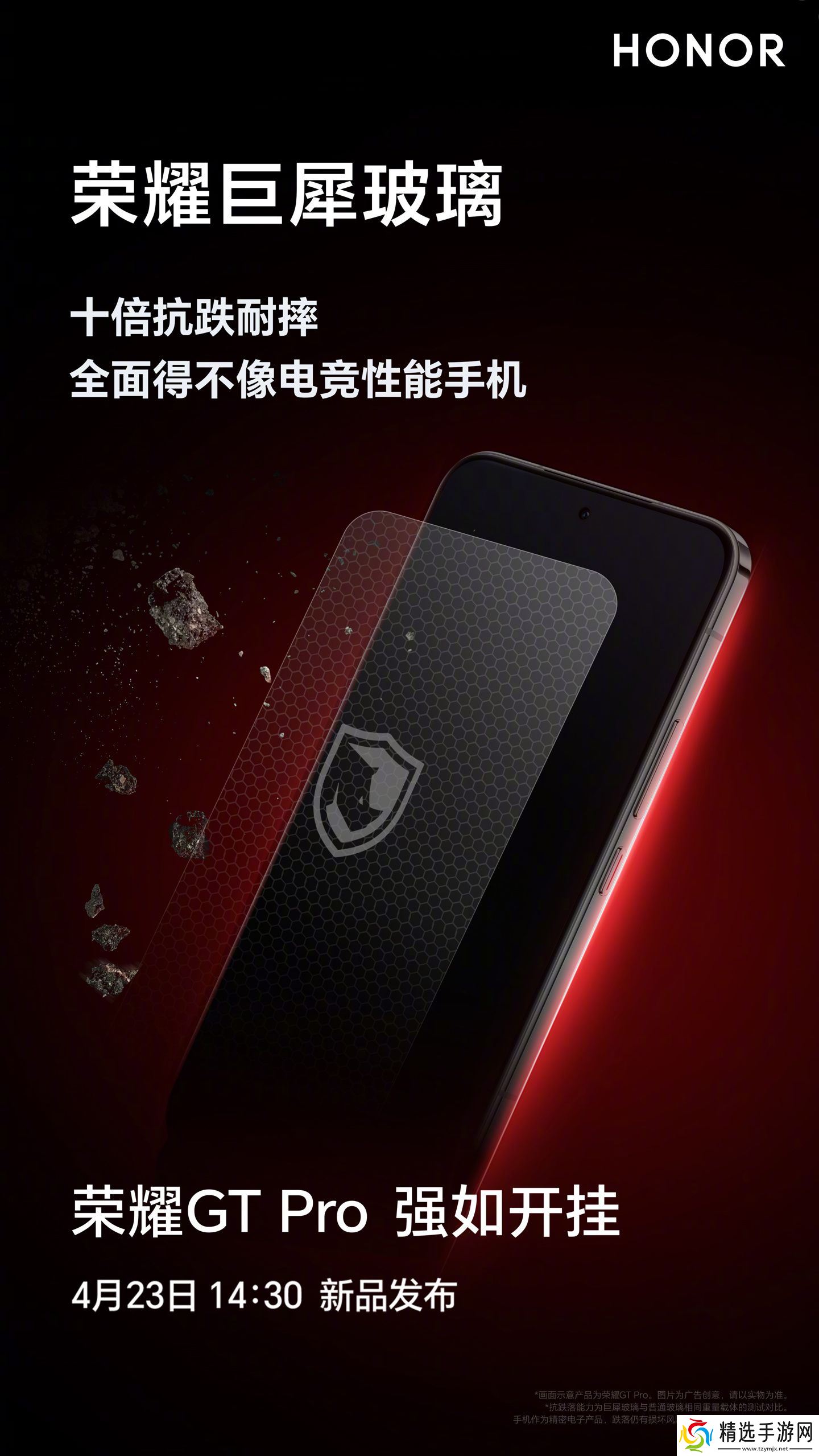 根据官方最新预热,荣耀 GT Pro 手机搭载荣耀巨犀玻璃,宣称“十倍抗跌耐摔”。