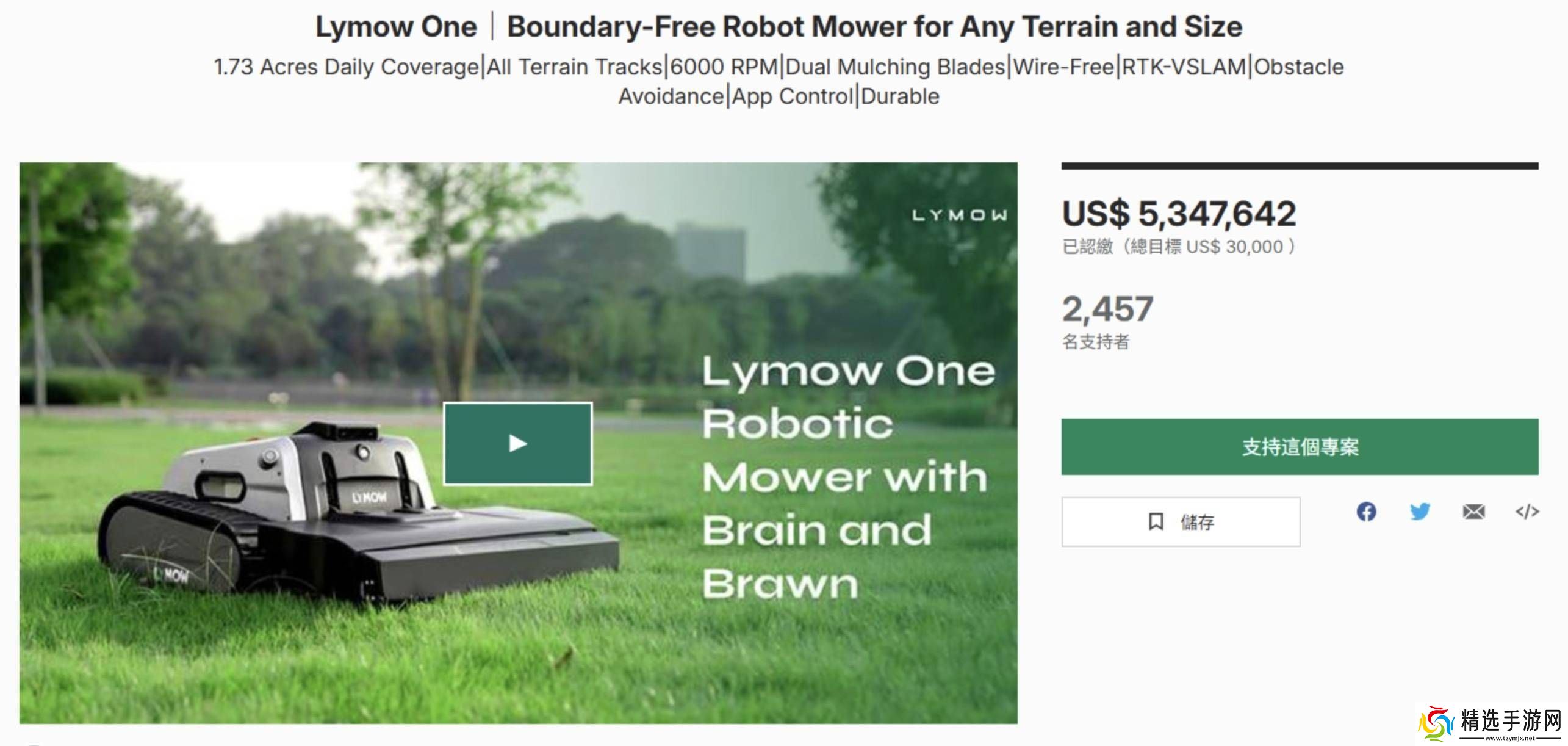 在硬件方面,Lymow One采用了履带式设计,具备更强的抓地能力和复杂地形适应能力。无论是高达45°的陡坡还是坑洼不平的地面,机器人都能稳定割草,不易打滑或卡住。同时,Lymow One还配备了碎草直刀,通过高速旋转切割草坪,确保草坪修剪得整洁均匀。这款机器人的客单价在3000美金左右,自2024年启动众筹以来,已筹集资金达500万美金,在Kickstarter上排名2024年全品类第四名,割草机品类额度第一。