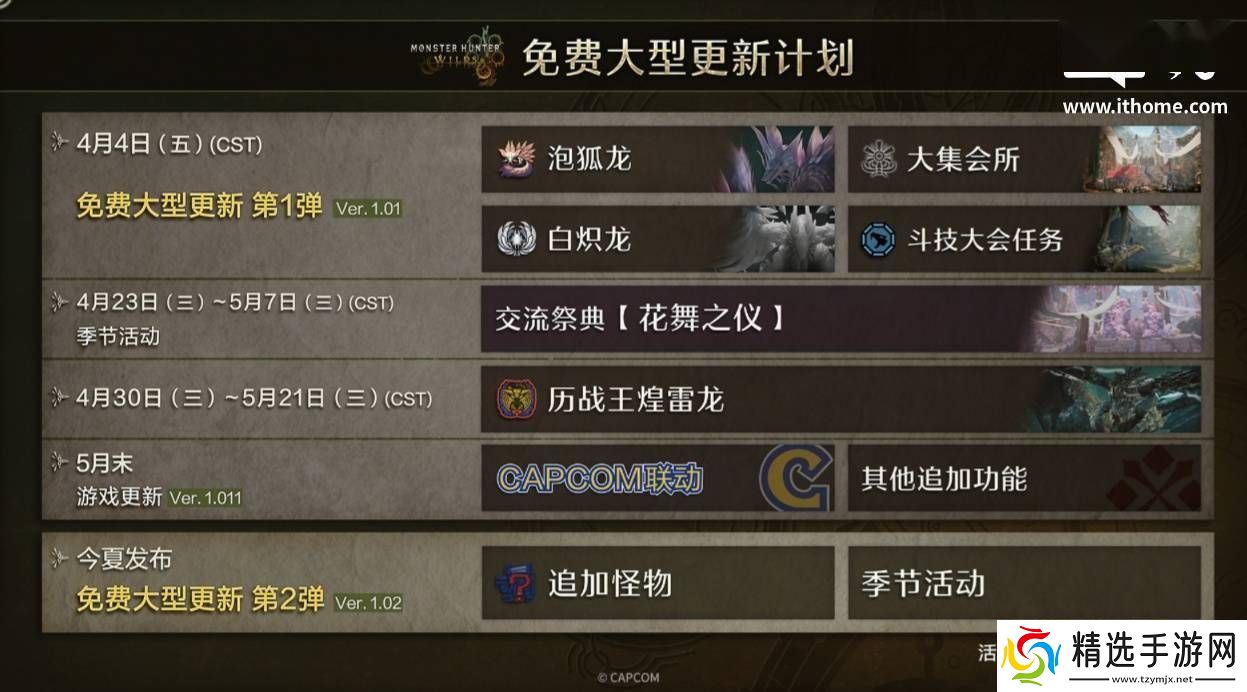 德田总监在信中透露,为了回馈广大玩家的热情支持,《怪物猎人:荒野》将于4月4日迎来首次免费大型更新。这次更新将引入包括“泡狐龙”在内的众多历战怪物及它们的特殊个体,为玩家们的狩猎之旅增添新的挑战与乐趣。紧接着,在5月末,游戏将迎来第二次更新,届时黑蚀龙以及各原野的顶级捕食者历战个体也将悉数登场,让玩家们的冒险更加丰富多彩。