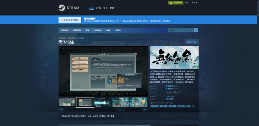《无休仙途》是一款融合放置与策略元素的修仙题材游戏,而这款游戏的官网地址就是Steam平台的购买页面,进入到这个游戏的购买页面基本上就能知道所有这款游戏的信息。