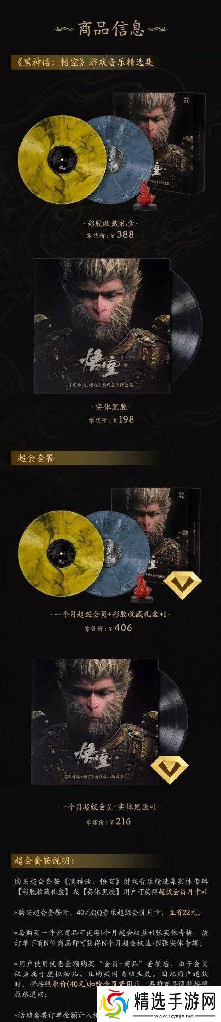 为了满足不同玩家的收藏需求,精选集推出了两种不同版本的实体专辑。其中,彩胶收藏礼盒版售价为388元,内容丰富,包含了彩胶封套、彩胶唱片、碟镇、歌词本、NFC纪念卡、制作人寄语以及精美海报。这一版本不仅音质卓越,更在包装和设计上独具匠心,是收藏爱好者的不二之选。
