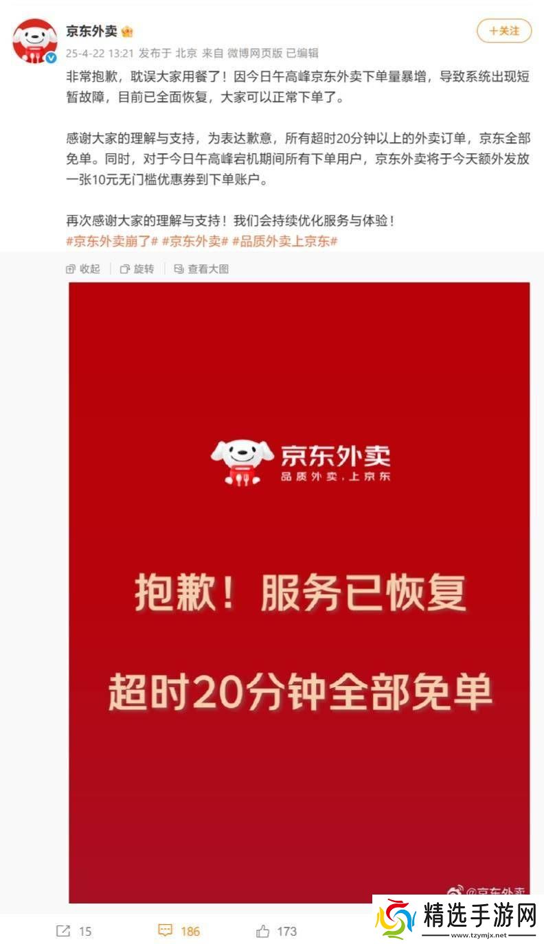 近期,京东外卖平台成为了社交平台上的热议话题,尤其是关于其服务状态的讨论。4月22日,众多网友纷纷在各大社交平台发声,指出“京东外卖崩了”,引发了广泛的关注。