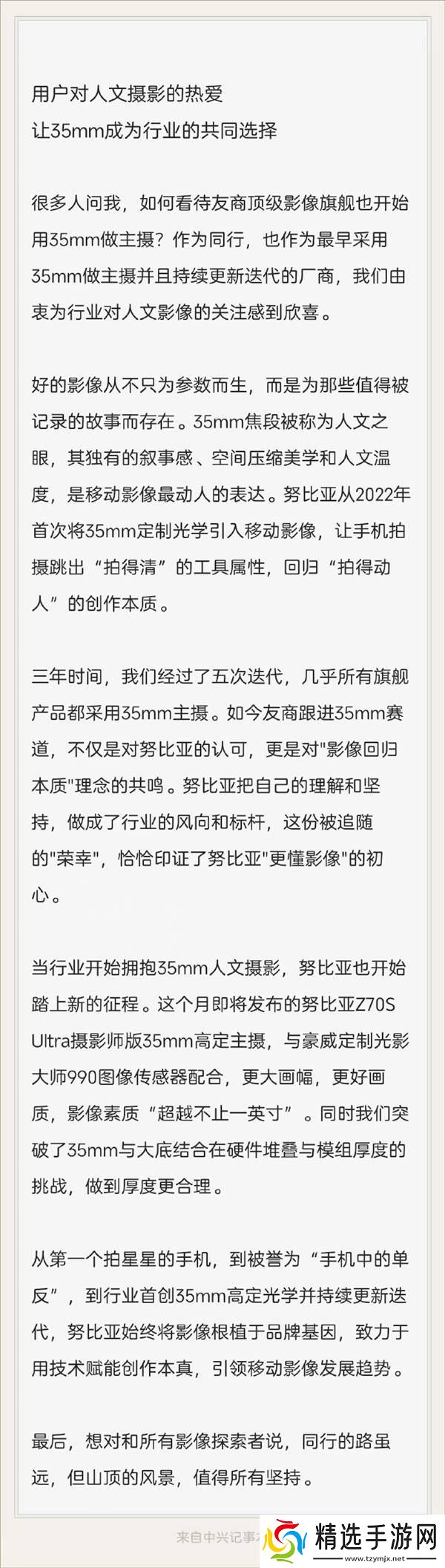倪飞进一步指出,众多友商纷纷加入35mm主摄的行列,不仅彰显了努比亚在行业内的引领作用,更反映了业界对于“影像回归本质”理念的共鸣。这一趋势,无疑为手机影像技术的发展注入了新的活力。