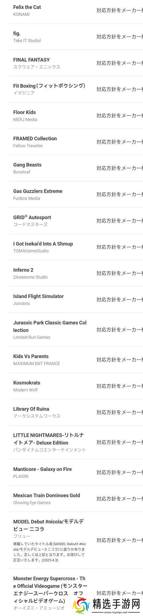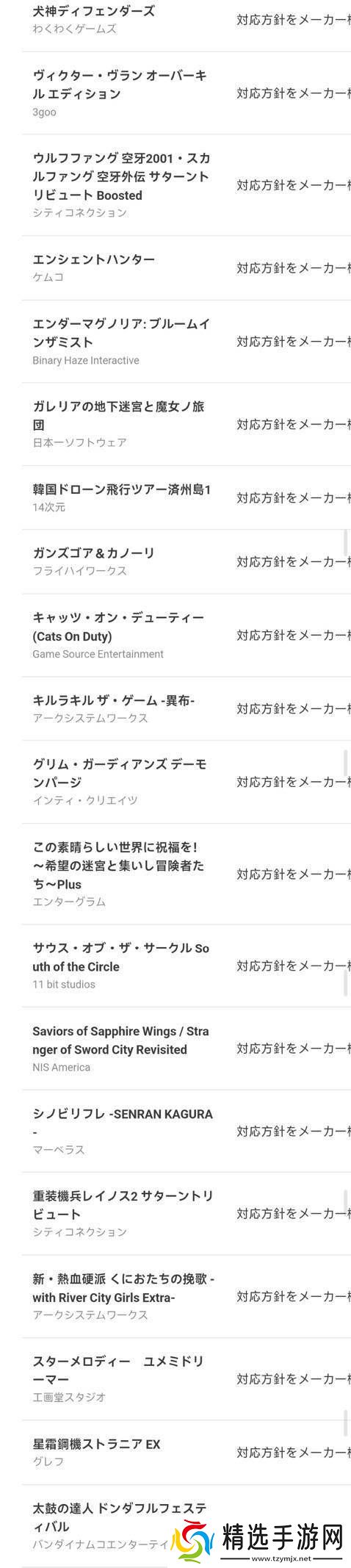 同时,任天堂还公布了运行验证中确认存在问题的第三方游戏名单,共计141款。这些游戏可能因各种原因无法在新主机上正常运行,玩家在尝试之前应做好充分的了解和准备。