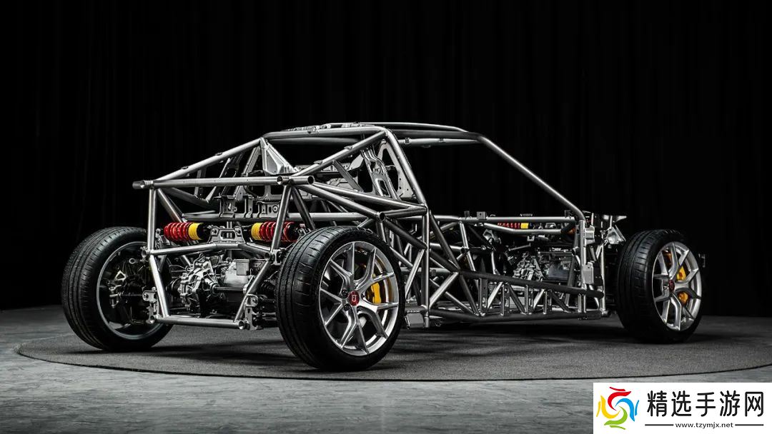 这款车型属于工匠派团队联合江铃集团新能源汽车公司打造的纯电动双门跑车,采用推杆式悬架(F1 同款技术)和管阵式车架,车身整备质量仅 1365kg,质心高度 380mm,采用后中置电池,搭载双电机四驱系统,综合功率 435 马力,峰值扭矩 560N・m,零百加速 2.9 秒。
