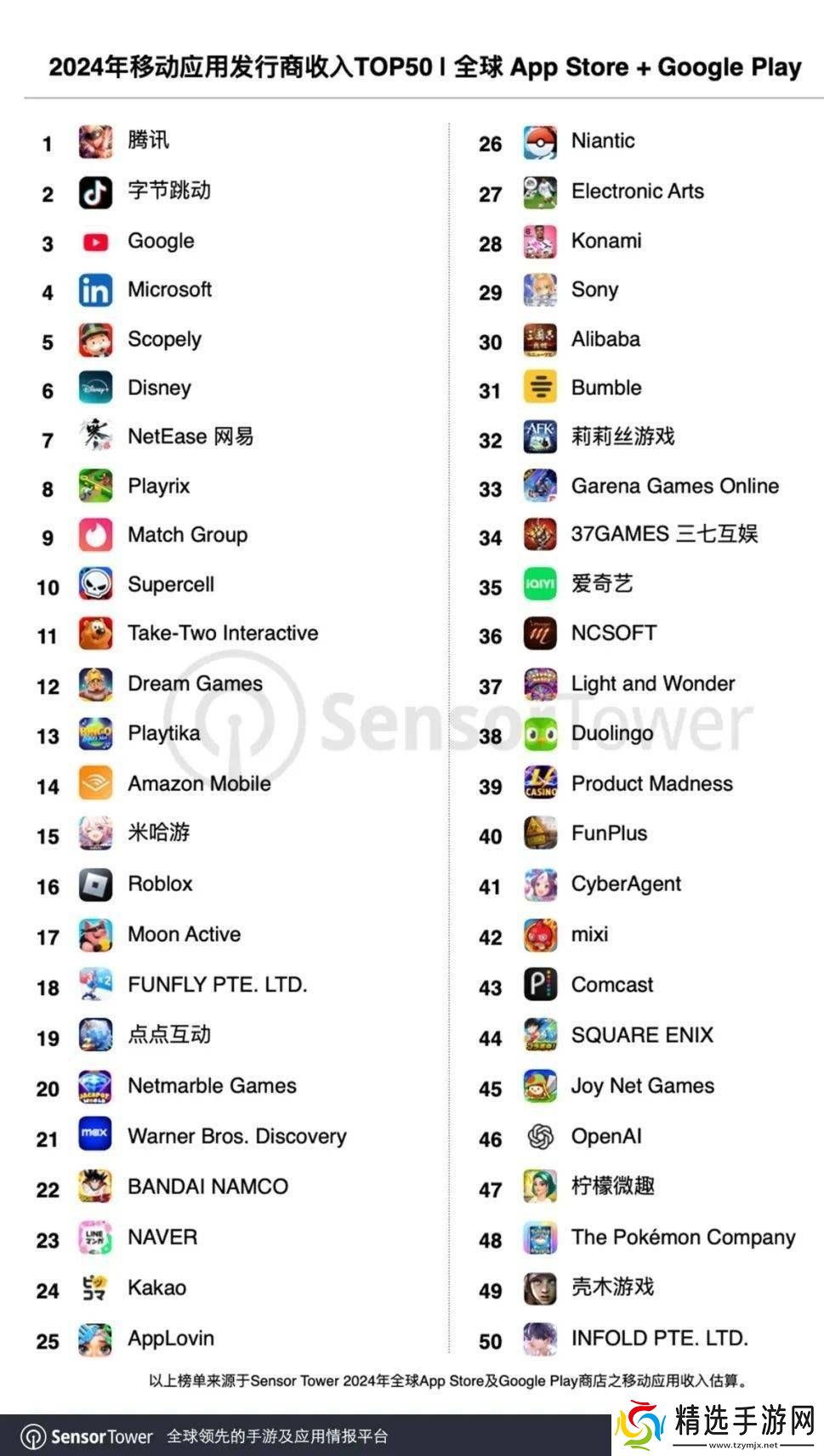 近日,Sensor Tower揭晓了备受瞩目的《2024年全球移动发行商收入TOP50》榜单,揭示了移动应用市场的最新格局。