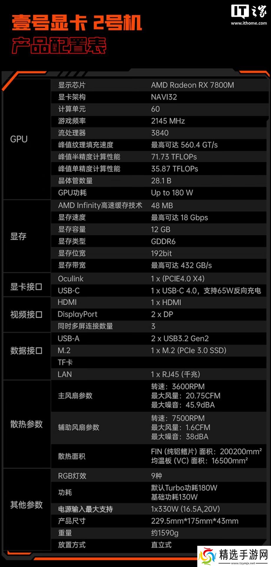 在性能表现上,壹号显卡二号机配备了 AMD Radeon RX 7800M 独立显卡以及 PCIe 3.0 SSD 插槽,支持多屏输出。