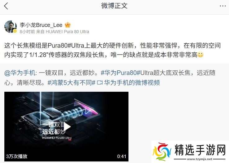 华为李小龙:这个长焦模组是 Pura 80 Ultra 上最大的硬件创新,唯一的缺点就是成本非常非常高