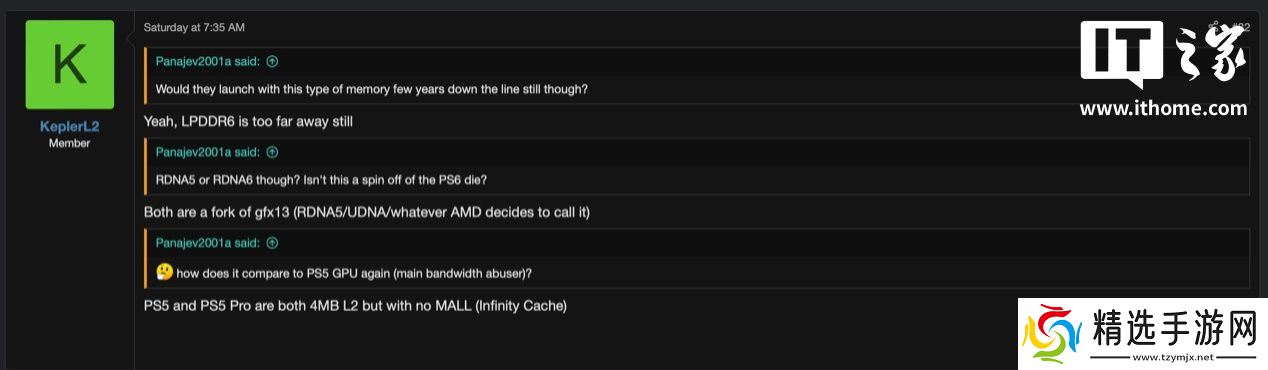 最后,在回复该掌机采用何种架构时,该消息人士表示该掌机与 PS6 都将基于 gfx13 (RDNA5 / UDNA) 架构的一个分支;同时该掌机将配备 4MB L2 缓存和 16MB MALL 缓存(本站备注:指无限缓存,该缓存是 AMD 针对其 RDNA 2 GPU 架构所设计的一个重要技术,可提升效率和降低延迟)。