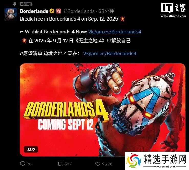 近日,2K Games 官方公布了一则令人振奋的消息,备受期待的《无主之地 4》发售日期有所调整,由原定的2025年9月23日提前到了9月12日。