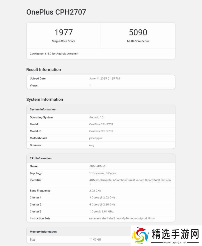 本站 6 月 12 日消息,一加 Nord 5 手机昨日(6 月 11 日)现身 GeekBench 跑分库,6.4.0 版本单核成绩为 1977 分,多核成绩为 5090 分。
