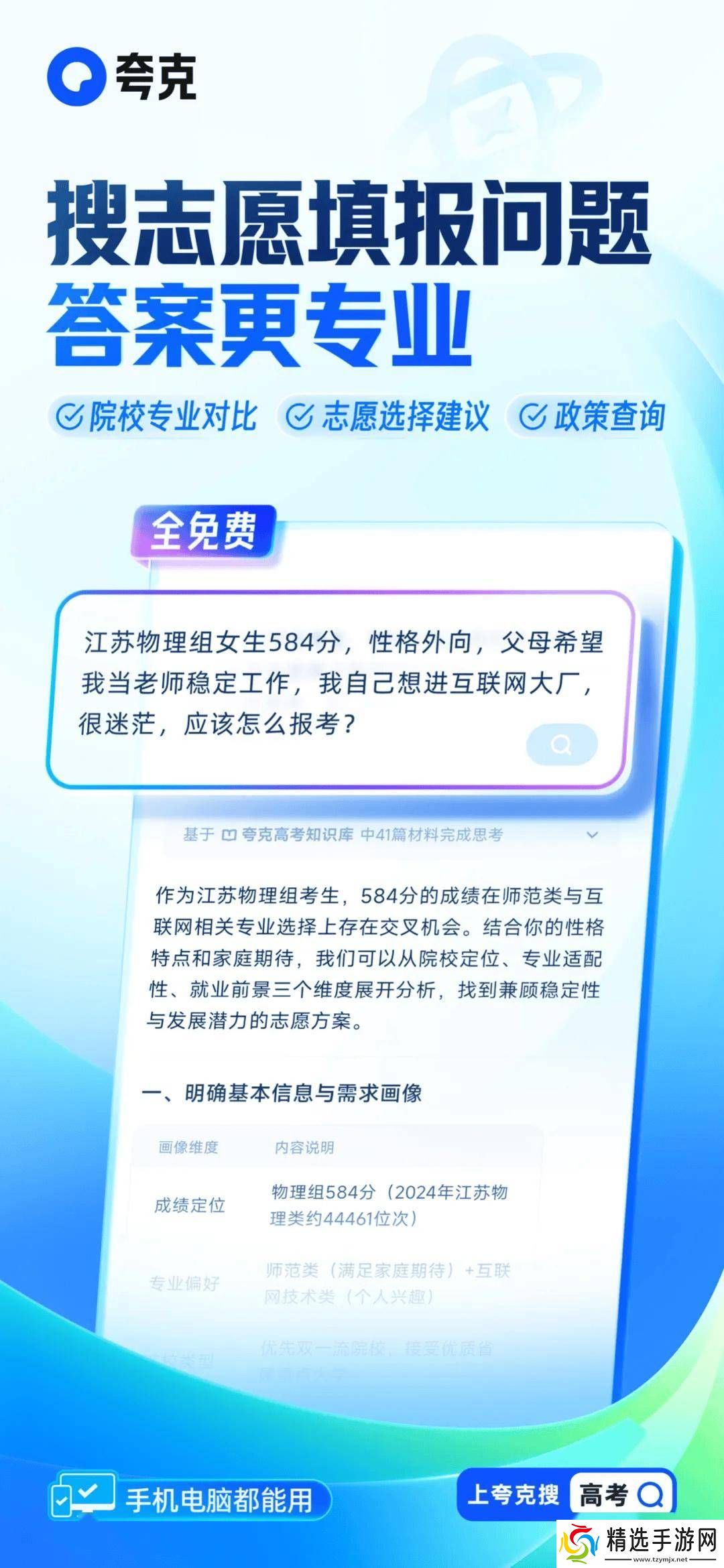 阿里巴巴旗下夸克应用近期推出了专为高考学子设计的高考志愿大模型,该模型集成了三大核心功能,旨在为考生提供全方位的志愿填报支持。
