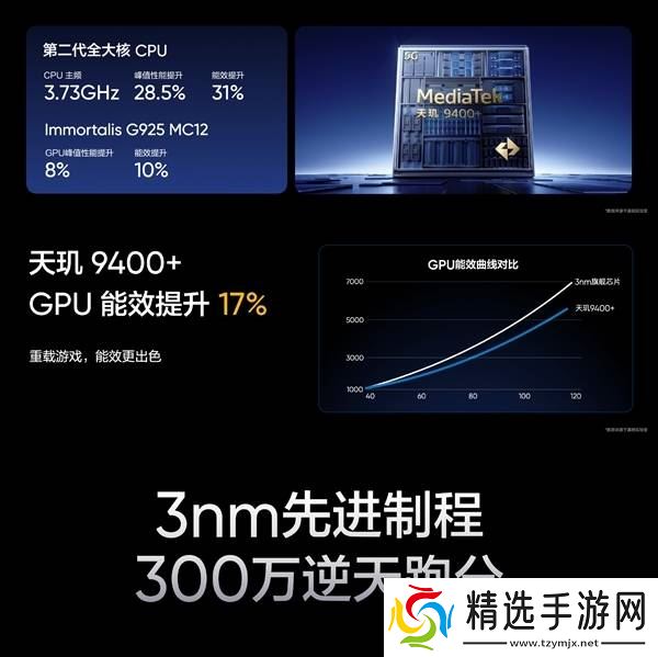 在核心性能方面,真我GT7搭载了天玑9400+处理器,GPU能效提升显著,高达17%,跑分轻松跨越300万分大关。该机型还支持1.5K+144Hz的超分超帧并发技术,并首发GT性能引擎2.0与芯片级内核技术,确保满电到关机过程中的游戏帧率稳定,如《原神》等大型游戏实测中,帧率表现如直线般平稳。