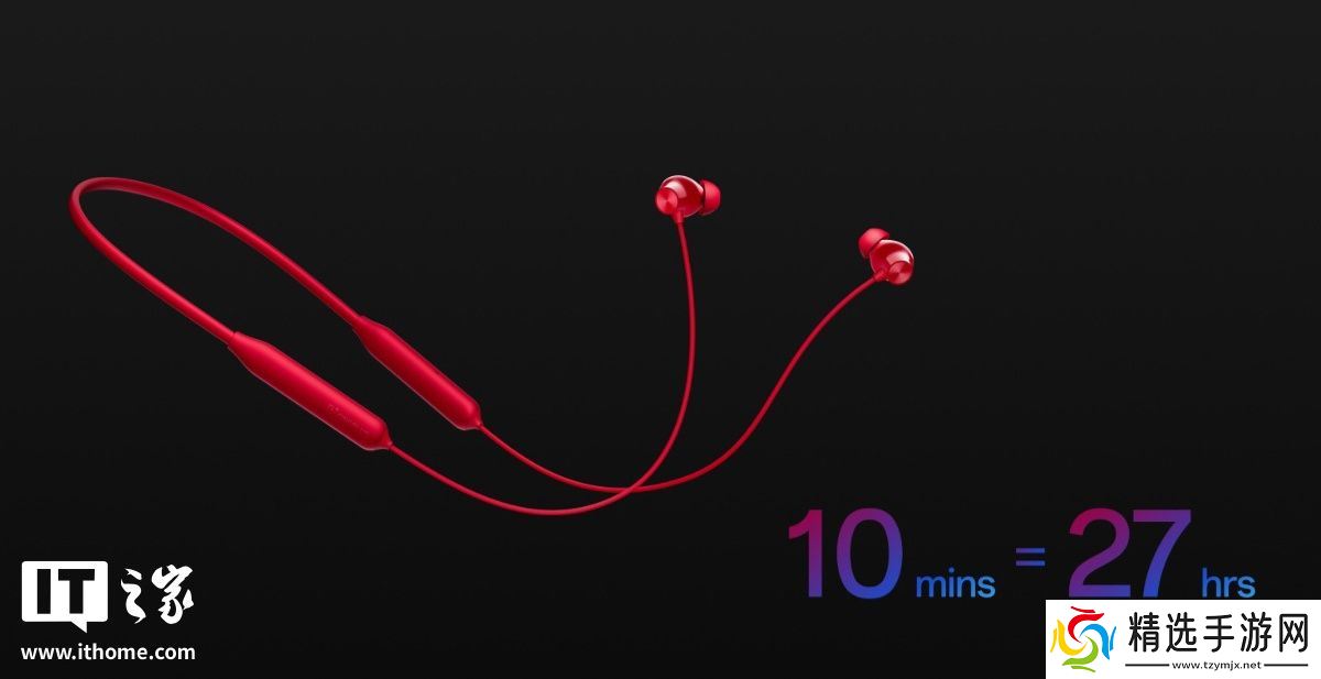 续航方面,该耳机最长续航可达 36 小时,支持快充技术,充电 10 分钟即可带来 27 小时的续航(一加实验室数据);同时耳机的耳塞部分采用磁吸设计,可在不佩戴耳塞时自动收纳。