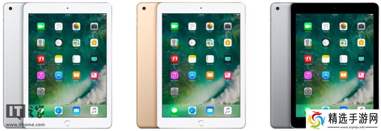 苹果 iPad 5 平板发布于 2017 年 3 月 21 日,搭载 9.7 英寸非全贴合视网膜屏幕,配有 A9 芯片;有太空灰、银色、金色三色可选,容量可选 32GB / 128GB。