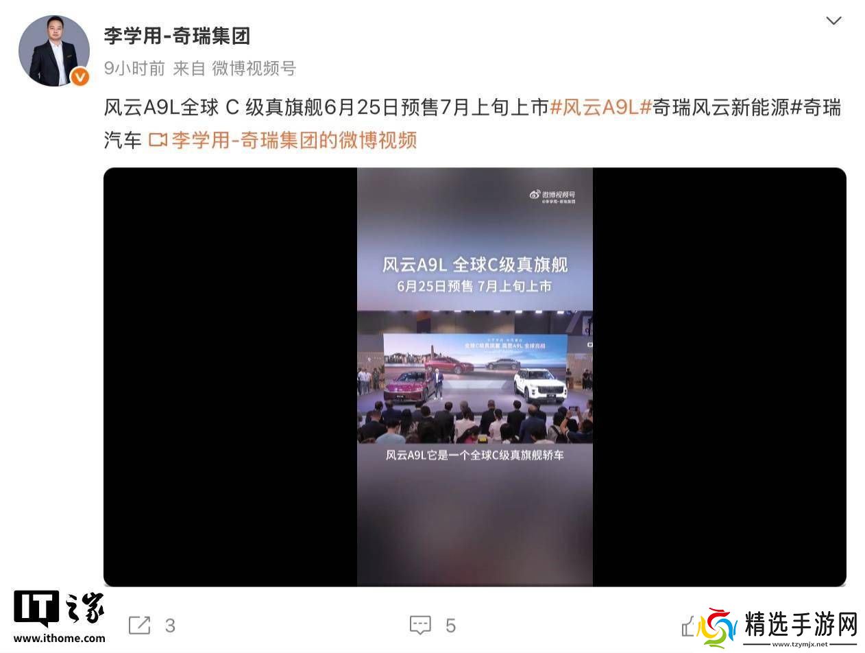 奇瑞汽车近日迎来了一个重大消息,其执行副总裁李学用在社交媒体平台上亲自宣布,备受期待的奇瑞风云A9L将于6月25日正式启动预售,并计划在7月上旬正式上市。这款车型实际上是奇瑞此前推出的C级旗舰轿车“风云A9”的更名升级版。