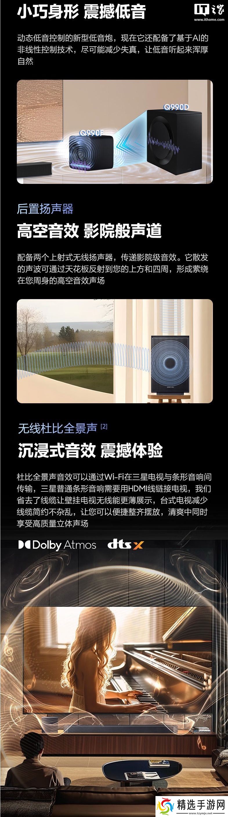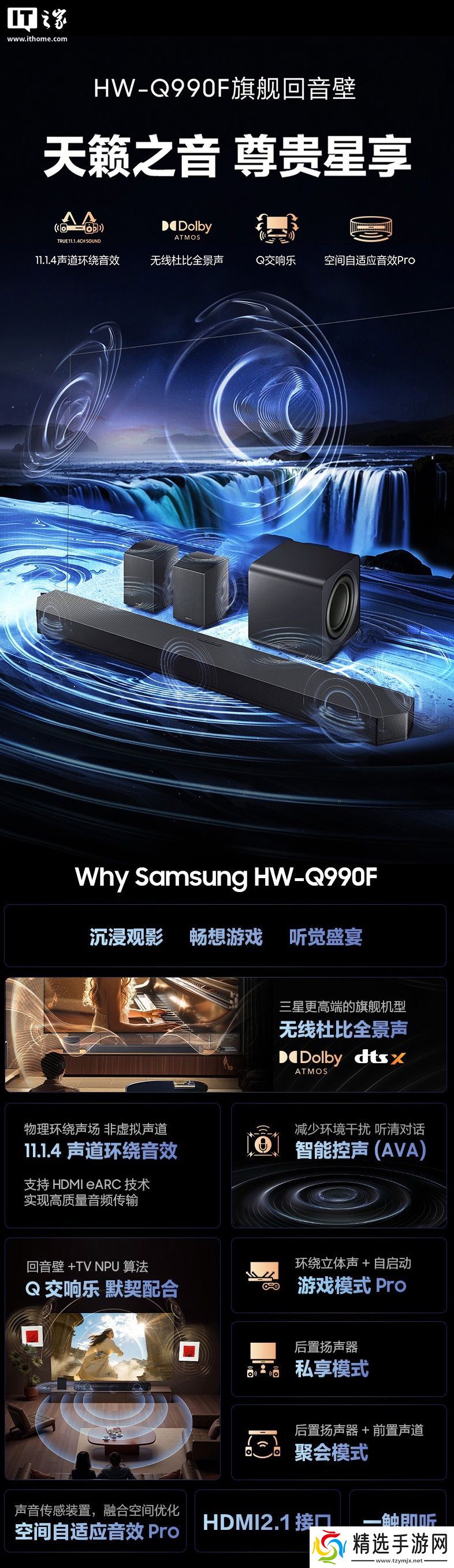 本站 6 月 15 日消息,三星现已推出一款型号为 HW-Q990F 的旗舰回音壁,以取代上一代 HW-Q990D,其主要改进了低音炮设计,首发价为9899 元(国补后8414.5元)。