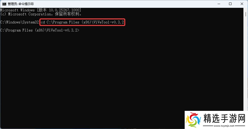 4. 使用 cd 命令跳转到 ViveTool 文件夹,例如“cd C:Program Files (x86)ViVeTool-v0.3.2”