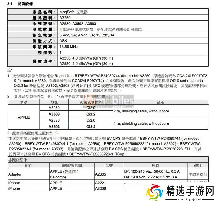 据悉,两款代号为A3502和A3503的新型MagSafe磁吸充电器已经通过了相关监管机构的认证。这两款充电器不仅在外观上可能有所革新,更重要的是,它们支持的充电标准已从Qi 2.0升级至Qi 2.2。这一升级意味着,理论上,iPhone 17系列将能够享受到最高50W的磁吸无线充电功率,较之前有了显著提升。