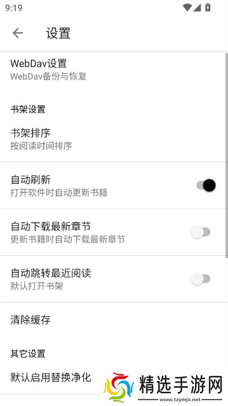 4、在设置界面下,我们可以进行webdav设置、书架排序、自动刷新等一系列操作。