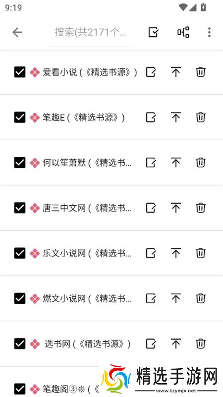 3、在书源界面下,我们能够看到非常丰富的小说源,我们可以自由删除或者增加。
