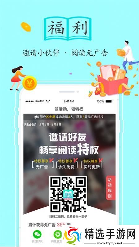 4.您可以邀请朋友使用该软件阅读小说,您可以享受无广告阅读的特权;