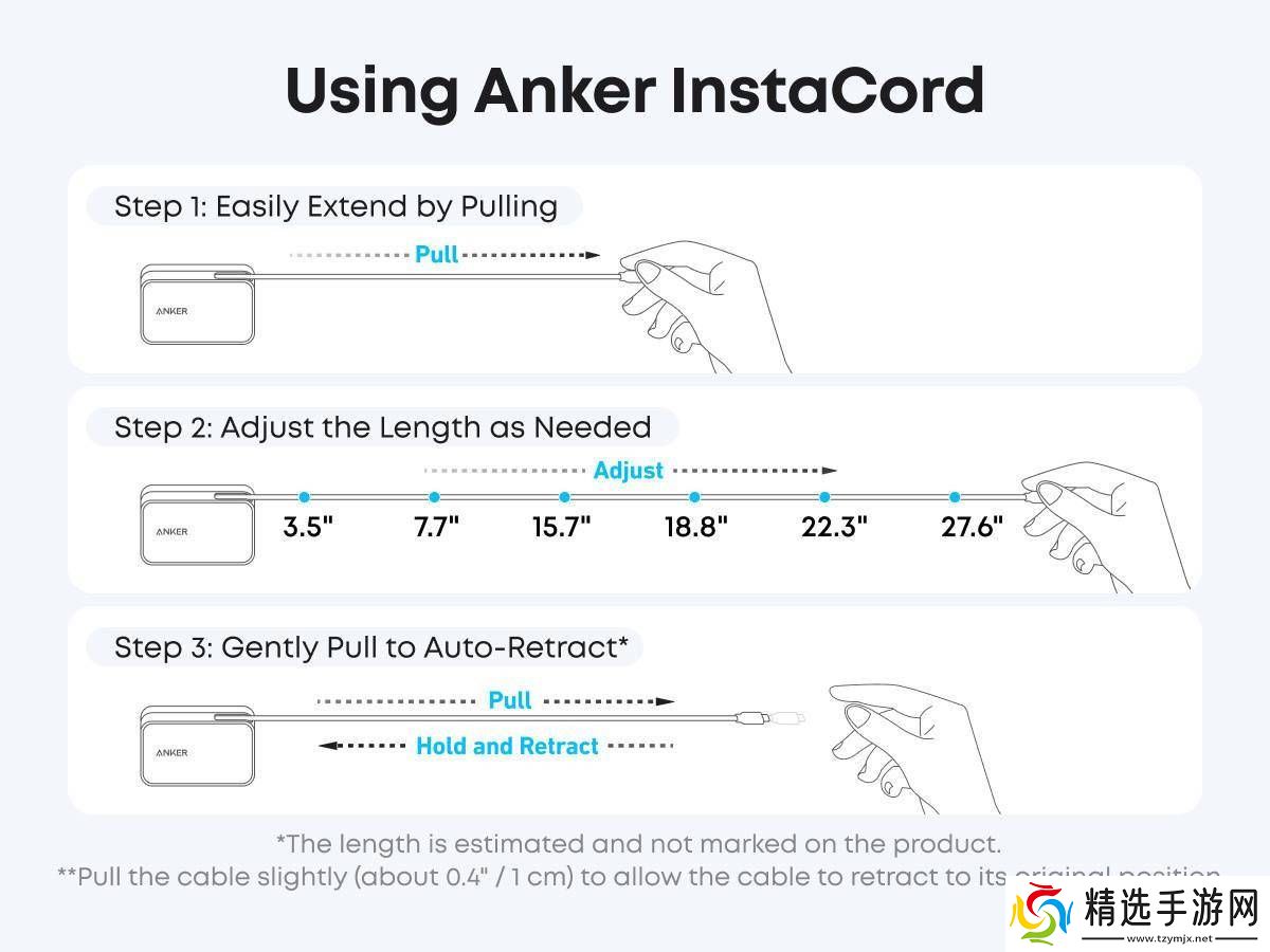 更令人惊喜的是,这款充电宝的USB-C线缆采用了六档可伸缩设计,调节范围从8.9cm到70cm不等,用户可以根据需要自由调节线缆长度。据称,这条线缆能够承受两万次的伸缩,耐用性极高。