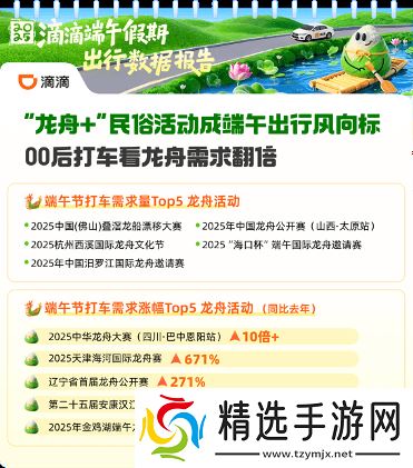 端午节期间,传统的龙舟赛事吸引了大量年轻观众的关注。尤其是00后群体,他们热情高涨,打车前往观赛的需求同比增长超过一倍,成为所有年龄段中增长最为迅猛的群体。