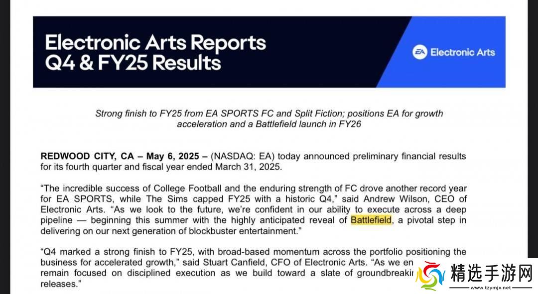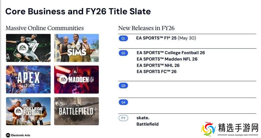 在游戏开发计划方面,艺电已经为即将到来的财年做好了准备。第一季度(4月至6月)将推出《F1 25》,而第二季度(7月至9月)则有多款重磅作品问世,包括《大学橄榄球 26》、《Madden 26》、《NHL 26》和《FC 26》。玩家还可以期待《滑板》新作和备受瞩目的《战地》新作的到来。