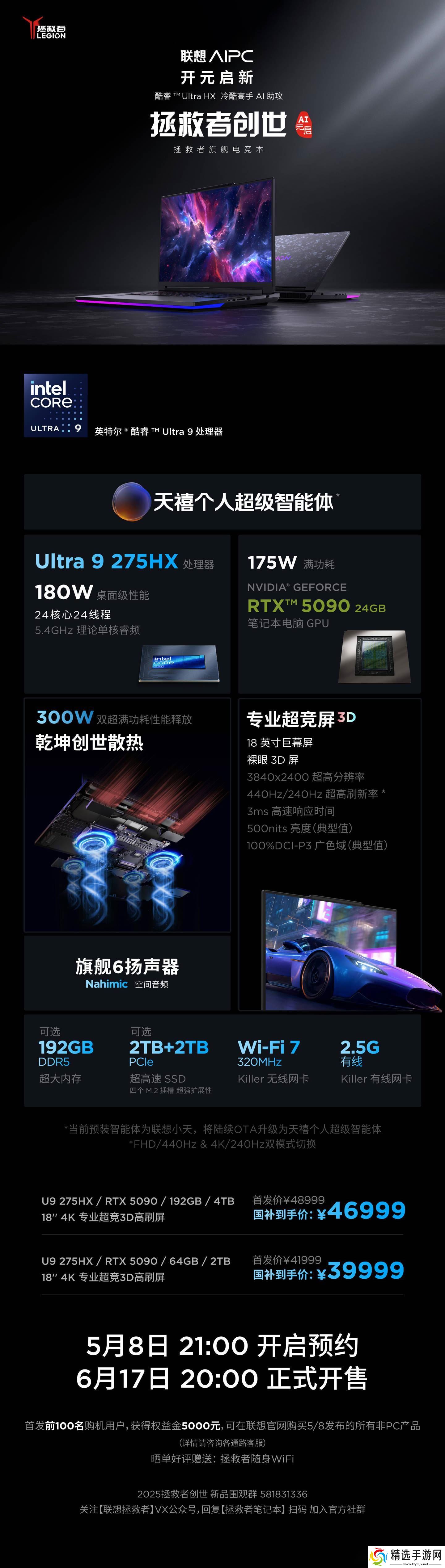 拯救者创世工作站配备了一块18英寸的大屏幕,支持4K分辨率,并具备2D/3D显示模式。其搭载了顶级的英伟达RTX 5090显卡和英特尔Core Ultra 9 275HX处理器,内存最高可达192GB,SSD存储最高为4TB,整体性能释放高达300W,为用户提供了无与伦比的计算能力。
