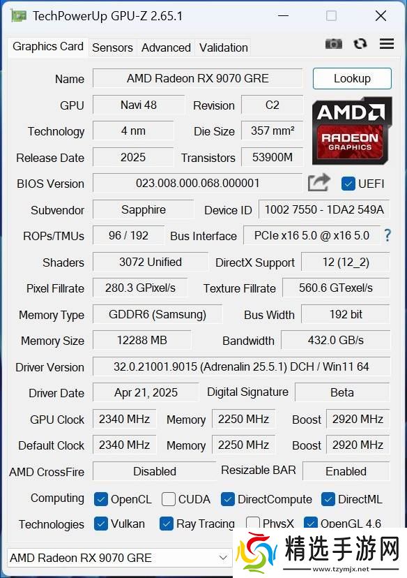 AMD近日发布了其RX 9000系列中的又一款新显卡——RX 9070 GRE,本次评测聚焦于蓝宝石推出的PURE 极地 RX 9070 GRE 12G D6 OC显卡。这款显卡以其独特的“Golden Rabbit Edition”(金兔版)后缀,吸引了众多A卡爱好者的目光。