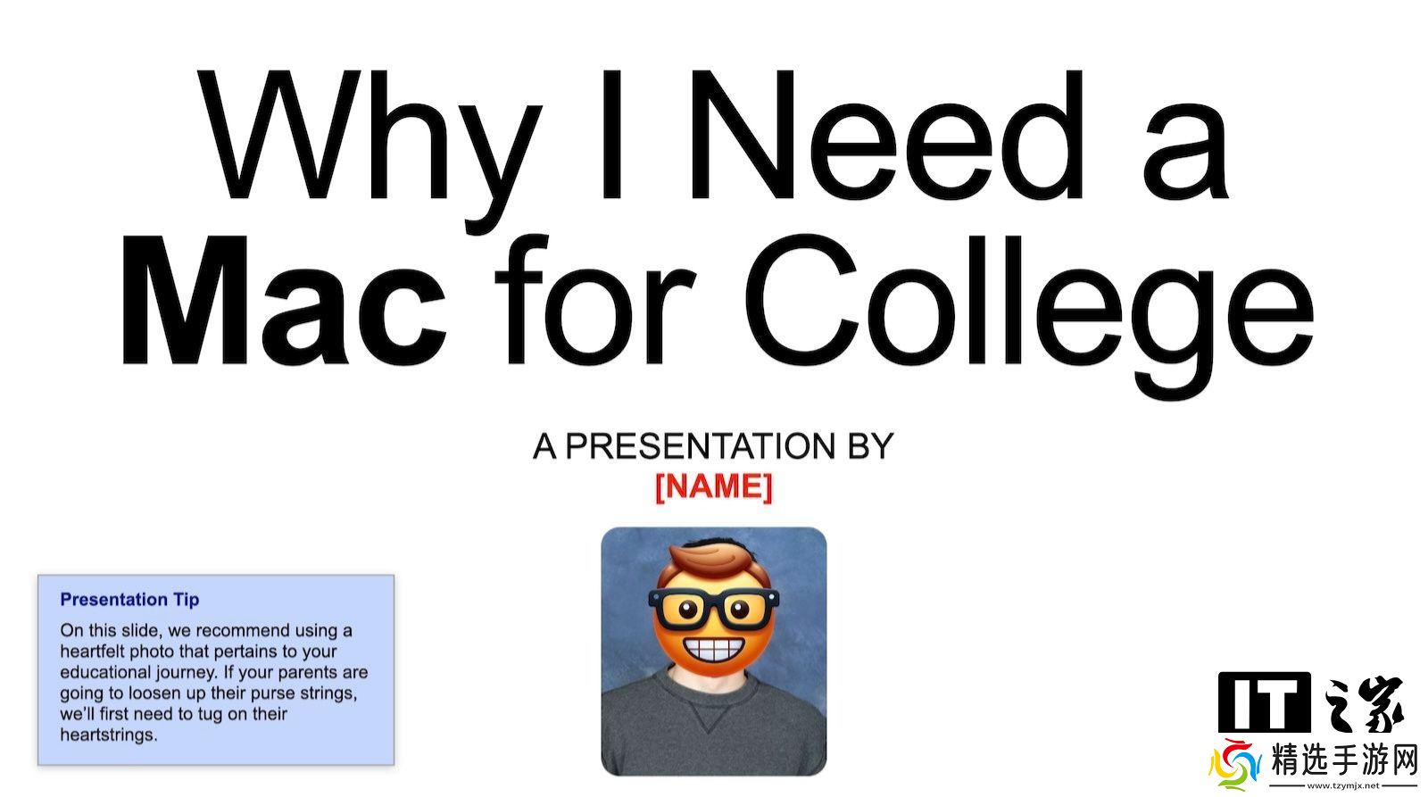 《The Parent Presentation》实际上是一份可定制的幻灯片演示文稿,旨在向家长解释为什么 Mac 是大学生的实用工具。该演示文稿以 PowerPoint、Keynote 和 Google Slides 格式提供免费下载,学生可以根据个人需求进行定制,并向家长展示,以说服他们为自己购买 Mac。