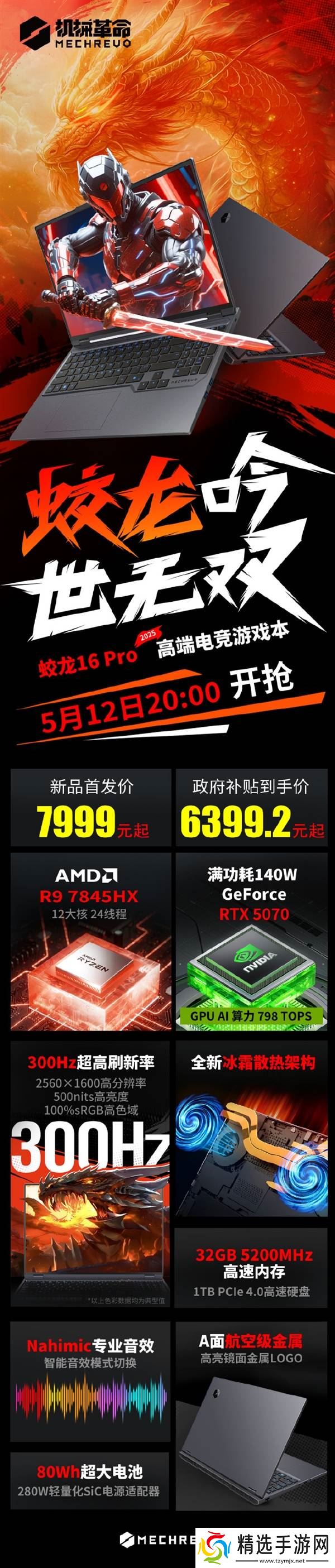 近日,备受瞩目的机械革命蛟龙16 Pro RTX 5070版本正式公布其首发价格,消费者仅需6399.2元起即可拥有,抢购活动定于5月12日晚上20时准时开启。