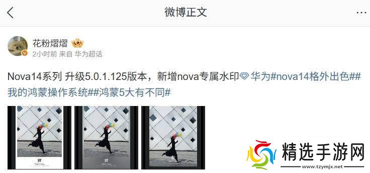 此次更新还为华为nova 14 Pro与Ultra机型带来了专属的水印功能。用户在拍照时,可以选择添加nova系列的专属水印,为自己的作品增添一份独特的标识和风格。