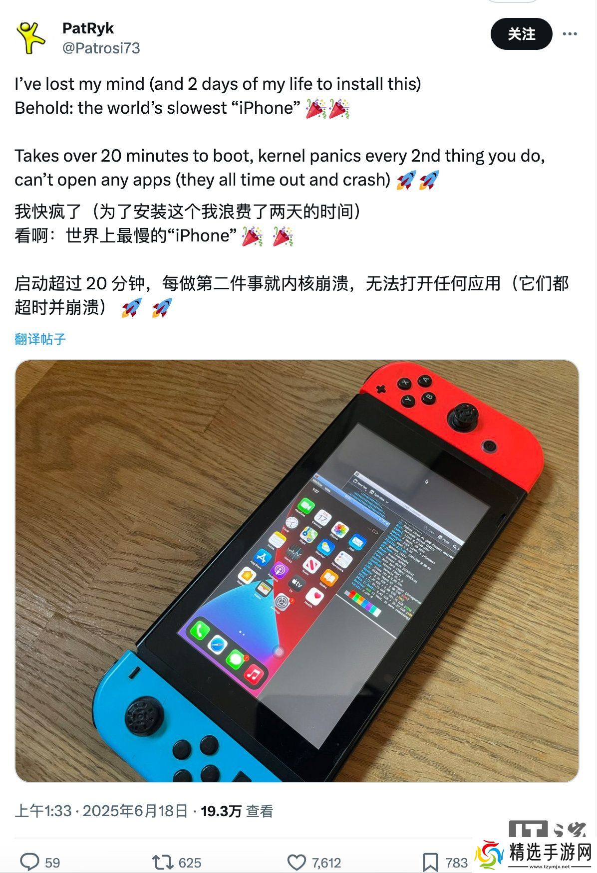 本站 6 月 19 日消息,据外媒 9to5Mac 今日报道,X 平台的一名用户 PatRyk 做出了一项大胆举动:花了整整两天时间,尝试在初代任天堂 Switch 上运行 iOS。