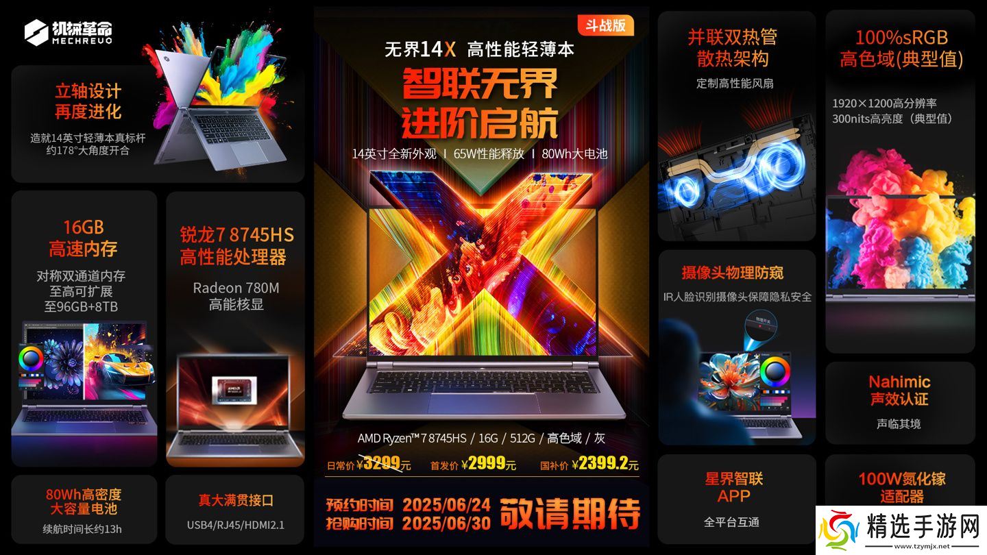 京东机械革命无界 14X 斗战版 R7-8745HS 16G 512G 高色域 灰 2999 元直达链接“斗战版”采用了AMD R7 8745HS 处理器、FHD + 屏幕,首发价 2999 元,叠加国补后 2399.2 元,6 月 30 日开售。