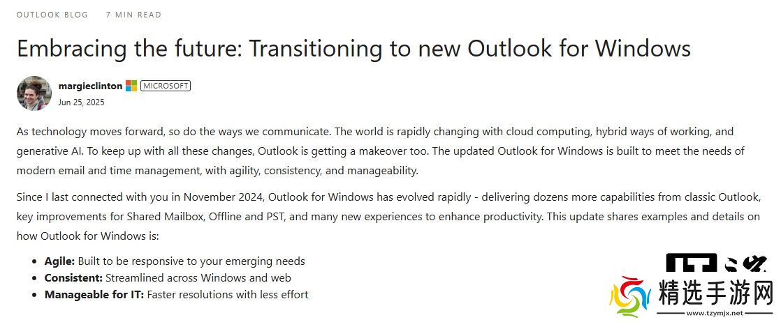 本站 6 月 25 日消息,针对系统管理员用户评价新版 Outlook for Windows 应用为“*(hot garbage)”一事,微软于当地时间 25 日发布了一篇超长博客予以回应,强调其代码在“稳定性、性能及安全性”方面的优势,并列举了多项经典版所不具备的功能。