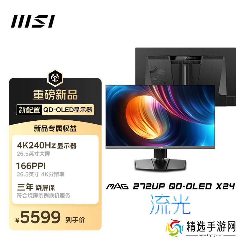 本站 5 月 6 日消息,微星旗下“MAG 272UP QD-OLED X24”26.5英寸显示器现已在京东开启首销,这款显示器主打“4K 240Hz”,定价为5599元。