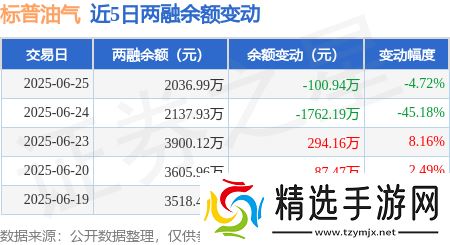 融券交易方面,标普油气在6月25日并未发生融券交易,市场保持相对平静。融资融券余额总计为2036.99万元,与前一交易日相比,出现了4.72%的下滑,显示出市场情绪的微妙变化。