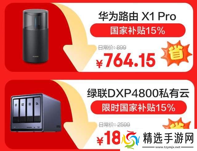 在智慧办公领域,京东同样推出了多款路由器和云盘好物。华为路由X1 Pro凭借其11根天线阵列和360°全方位信号覆盖能力,成为现代家庭智慧办公的理想选择。活动期间,该路由器在国家补贴下,到手价仅为764.15元。绿联DXP4800私有云也备受瞩目,其本地化AI照片管理功能和2.5Gbe网口,为用户提供了高效且安全的数据存储方案,售价1869元,同样享受国家补贴优惠。