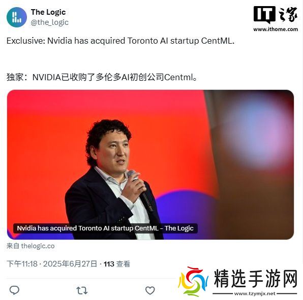 本站 6 月 27 日消息,据 The Logic 称,芯片巨头英伟达已经悄悄收购了总部位于加拿大多伦多的 AI 初创公司 CentML 及其技术,至少有三位联合创始人和 15 名工程师转投英伟达。