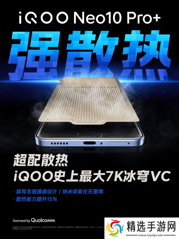 为了充分发挥至强旗舰性能,iQOO Neo10 Pro+还配备了iQOO迄今最大的7K冰穹VC液冷散热系统。该系统采用了超导毛细通道设计和纳米级氧化石墨烯两大黑科技,相比前代产品,散热能力提升高达15%。这一设计确保了Neo10 Pro+在高性能输出时,依然能够保持冷静,不受温度限制。